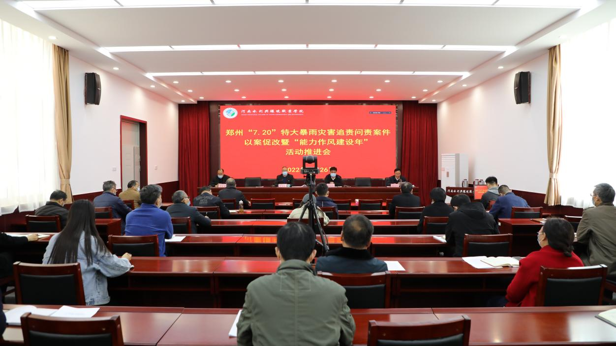 为深入学习贯彻习近平总书记关于防灾救灾减灾工作重要论述,认真落实省水利厅、省教育厅关于开展郑州“7·20”特大暴雨灾害追责问责案件以案促改工作会议精神,把以案促改工作与“能力作风建设年”活动融合贯通,3月26日,我校召开郑州“7·20”特大暴雨灾害追责问责案件以案促改工作暨“能力作风建设年”活动推进会。校领导,各党总支及直属党支部书记、各部门主要负责人参加。会议由副校长张凌杰主持。