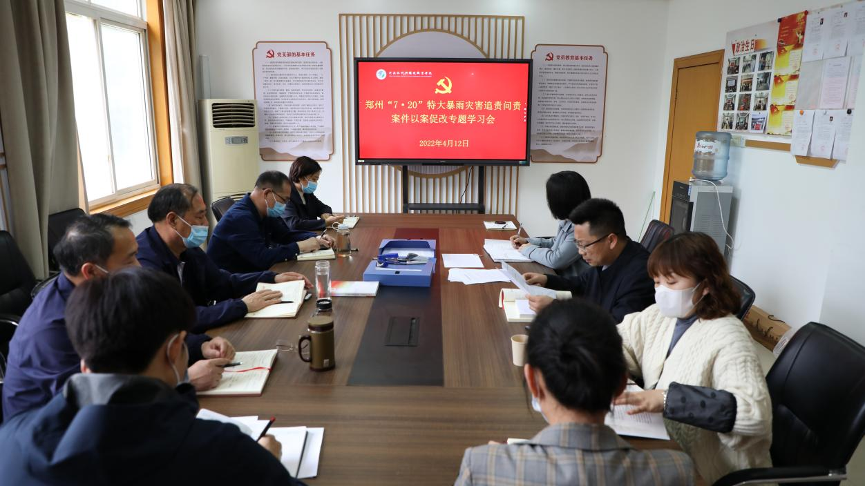 4月12日,党群第二党支部召开郑州“7.20”特大暴雨灾害追责问责案件以案促改专题学习会,支部党员及教职工参加。