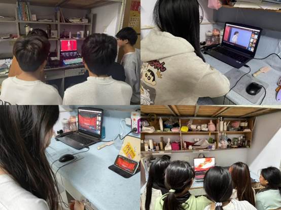 师生通过电脑、手机等方式认真观看
