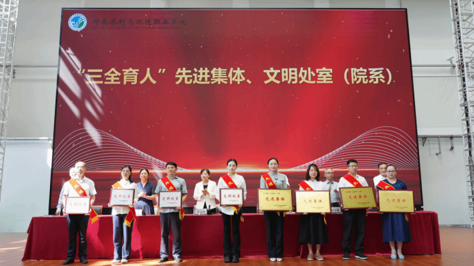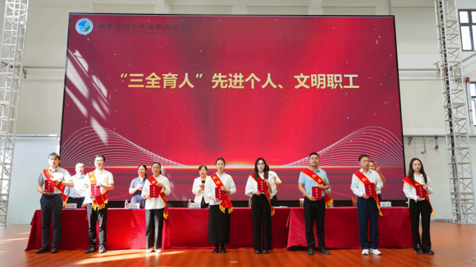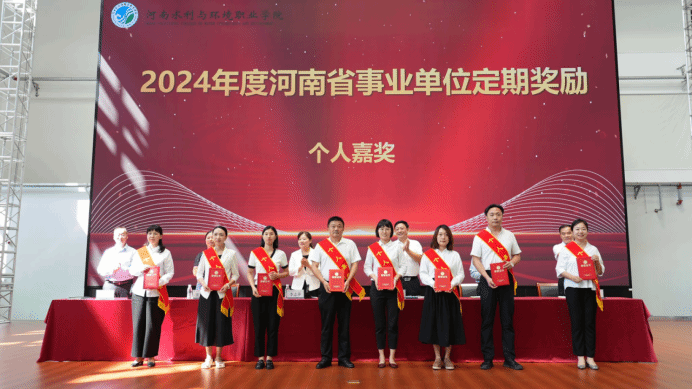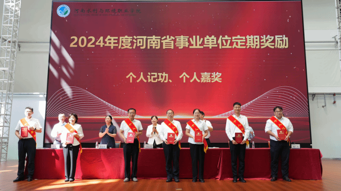 伴随庄严的国歌,大会正式拉开帷幕。会上先后宣读多份表彰名单与决定,包括荣休人员名单、从事水利教育工作30年人员名单、河南省教育系统先进集体及优秀教师名单、2024年度河南省事业单位人员定期奖励(个人记功、个人嘉奖)名单,以及《关于授予2024-2025学年教学科研工作成绩突出教师荣誉称号的决定》《关于表彰2024年度“三全育人”先进集体、先进个人的决定》《关于表彰2025“最美水院人”的决定》《关于表彰2024年度文明单位、文明个人的决定》。